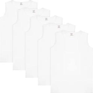 5er Pack Herren Muskelshirt Tank Top Unterhemd - Rundhals Ausschnitt - aus hochwertiger Baumwolle (glatt) - Extra Lang - Nahtlos - Weiß - Größe M