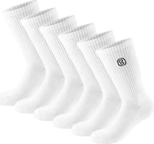 6 Paar Tennissocken für Herren und Damen - Lange Sportsocken aus Baumwolle und Polyester - Crew Socks Baumwollsocken Set - Unisex Fitness Socken - Weiß - Größe 43-46