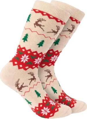 3 Paar Weihnachtssocken für Damen und Herren - Rentiere Beige - Baumwolle Socken Weihnachten - Größe 35-40