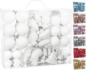 77-teiliges Set Weihnachtskugeln Christbaumschmuck - Kunststoff Baumkugeln für Weihnachtsbaum - Weiß