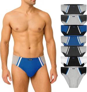 7er Pack Herren Sportslips - Farbige Slips aus Baumwolle - Retro Unterhosen ohne Eingriff - Männer Unterwäsche für den Alltag und Sport - Farbmix Blau, Schwarz, Grau, Weiß - Größe M