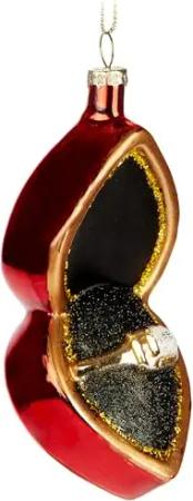 Antragsring - Handbemalte Weihnachtskugel aus Glas - 13 cm Baumkugel Antrag Hochzeit - Ring in roter Box - Anhänger für Verlobte und Ehepaare - Mundgeblasener Christbaumschmuck