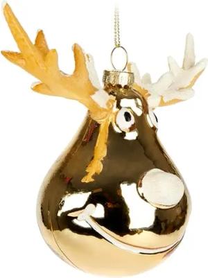 Elch Gold - Handbemalte Weihnachtskugel aus Glas - 15 cm Baumkugel Elchkopf - Mundgeblasener Christbaumschmuck - Figur Lustig Deko Anhänger