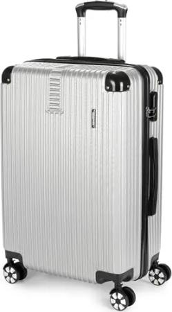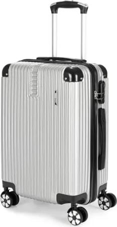 Hartschalen Reisekoffer London - Rollkoffer mit Zahlenschloss, 4 Rollen und Komfort Tragegriffen - ABS Koffer 43 x 66,5 x 26 cm - Hartschalenkoffer Trolley (L - Silber)