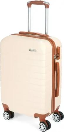 Handgepäck Koffer Paris - Reisekoffer Trolley mit Zahlenschloss, 4 Rollen und Komfort Tragegriffen - 37 x 56 x 22 cm - ABS Hartschalen Rollkoffer (M - Creme Weiß und Hellbraun)