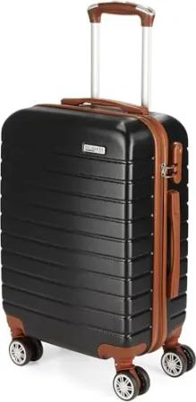 Handgepäck Koffer Paris - Reisekoffer Trolley mit Zahlenschloss, 4 Rollen und Komfort Tragegriffen - 37 x 56 x 22 cm - ABS Hartschalen Rollkoffer (M - Schwarz und Hellbraun)