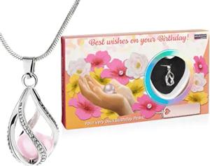 Happy Birthday Wunschperle für Geburtstag - Halskette mit Silber Anhänger + Muschel mit echter Perle als Geschenkset für Freunde und Familie