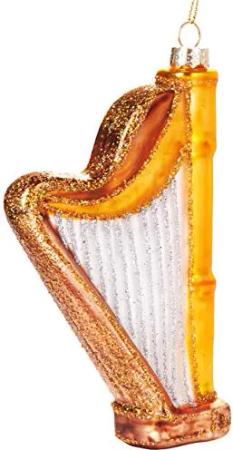 Harfe Gold - Handbemalte Weihnachtskugel aus Glas - Mundgeblasener Christbaumschmuck Figuren lustig Deko Anhänger Baumkugel - 14 cm