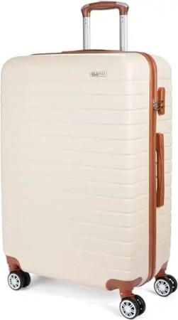 Hartschalen Koffer Paris - Reisekoffer Trolley mit Zahlenschloss, 4 Rollen und Komfort Tragegriffen - ABS Rollkoffer 49 x 76,5 x 29,5 cm (XL - Creme Weiß und Hellbraun)