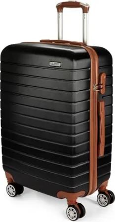 Hartschalen Koffer Paris - Reisekoffer Trolley mit Zahlenschloss, 4 Rollen und Komfort Tragegriffen - Rollkoffer 43 x 66,5 x 26 cm - ABS Hartschalenkoffer (L - Schwarz und Hellbraun)