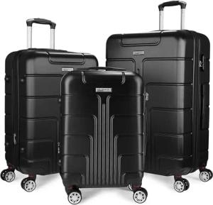 Hartschalen Kofferset Miami - Erweiterbare Koffer mit Zahlenschloss, 4 Rollen und Tragegriffen - 3 teiliges Reisekoffer Set inklusive Handgepäck - ABS Rollkoffer (M, L, XL - Schwarz)