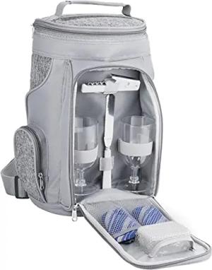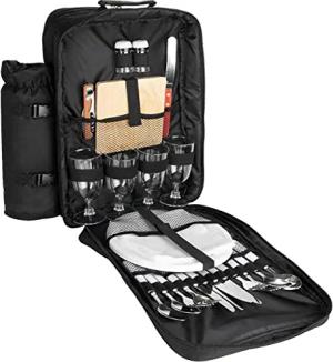 Picknickrucksack für 4 Personen Schwarz 30 × 39 x 21 cm - inkl. Kühlfach + Abnehmbarer Iso-Flaschenhalter