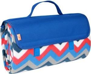 Picknick Decke Fleece mit wasserfester PEVA Unterseite 150 x 135 cm Blau Multicolor Zickzack