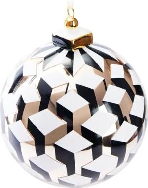 Premium Weihnachtskugel 3D Würfel Gold, Weiß und Schwarz - 10 cm Baumkugel aus Glas mit Porzellan Spitze - Moderne Weihnachtsbaumkugel - Christbaumkugel - Christbaumschmuck