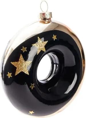 Premium Weihnachtskugel Donut - Sterne Gold und Schwarz - 10 cm Baumkugel aus Glas - Handbemalter Christbaumschmuck Anhänger - Luxus Weihnachtsdeko Christbaumkugel