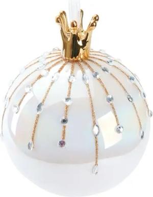Premium Weihnachtskugel Perle mit Krone Gold - 10 cm Baumkugel aus Glas mit Porzellan Figur - Hergestellt in Handarbeit - Christbaumschmuck Weihnachtsdeko Christbaumkugel - Weiß Bunt