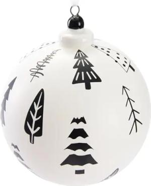 Premium Weihnachtskugel Weiß - Tannenbäume - 10 cm Baumkugel Matt und Handbemalt - Glas Weihnachtsbaumkugel mit Porzellan Topper - Christbaumschmuck Anhänger