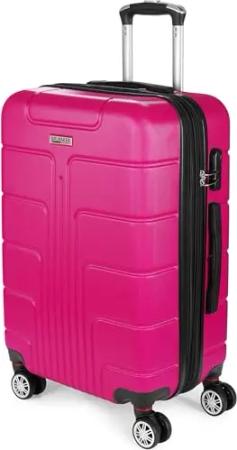 Reisekoffer Miami - Erweiterbarer Hartschalen Rollkoffer mit Zahlenschloss, 4 Rollen und Komfort Tragegriffen - ABS Koffer 43 x 66,5 x 28,5 cm - Hartschalenkoffer (L - Pink)