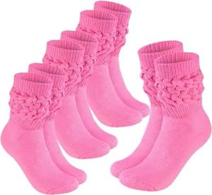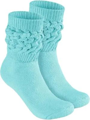 3 Paar Slouch Socken - Damen Schoppersocken für Sport und Freizeit - Lässige Retro-Socken für Frauen - Scrunch Knit Baumwollsocken - Mint, Pink und Grün - Größe: 35-38