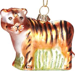 Tiger - Handbemalte Weihnachtskugel aus Glas - Mundgeblasener Christbaumschmuck Figuren lustig Deko Anhänger Baumkugel - 7.5 cm