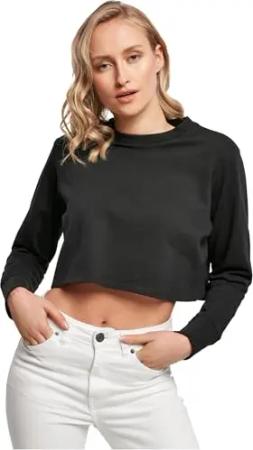Damen Ladies Terry Cropped Crew Pullover Sweater, Schwarz, XL EU