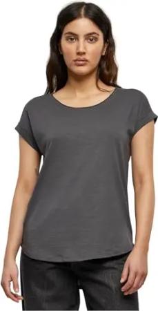 Damen Long Slub Tee – Locker geschnittenes T-Shirt mit Cut-on-Ärmeln, Slub-Struktur & verlängertem Rückenteil, lässig & bequem, Darkshadow, S