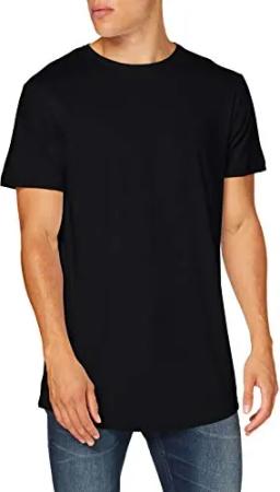 Herren Shaped Long Tee – Langes T Shirt aus Baumwolle mit abgerundetem Saum im Streetwear Style für Alltag Freizeit und Casual Outfits,Black2,XS