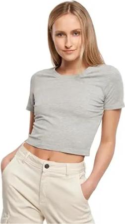 Ladies Cropped Tee Damen T-Shirt Shirt Top Kurzarm kurzärmlig, Größe:M, Farbe:Grey