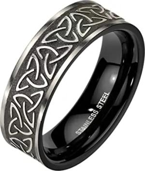 67 (21.3) Fingerring Keltenknoten Triskele silber/schwarz aus 316L Edelstahl
