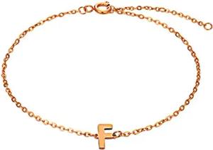 Alphabet Armkette Roségold mit Buchstaben-Anhänger aus Edelstahl Unisex - Buchstaben A-Z (F)