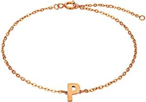Alphabet Armkette Roségold mit Buchstaben-Anhänger aus Edelstahl Unisex - Buchstaben A-Z (P)