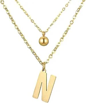 Buchstaben-Kette und Kugel-Kette SET goldfarben aus Edelstahl für Damen - N