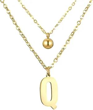 Buchstaben-Kette und Kugel-Kette SET goldfarben aus Edelstahl für Damen - Q