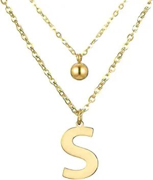 Buchstaben-Kette und Kugel-Kette SET goldfarben aus Edelstahl für Damen - S