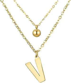 Buchstaben-Kette und Kugel-Kette SET goldfarben aus Edelstahl für Damen - V