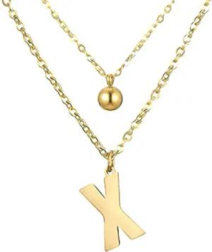 Buchstaben-Kette und Kugel-Kette SET goldfarben aus Edelstahl für Damen - X