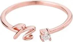 Buchstaben Ring roségold Zirkonia-Kristall aus Metall - biegbarer Fingerring/Zehenring Toering für Damen, Kinder & Herren - N