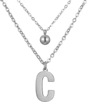 Damen Doppel-Kette BUCHSTABE und KUGEL Silber aus Edelstahl (Auswahl von A-Z) (C)