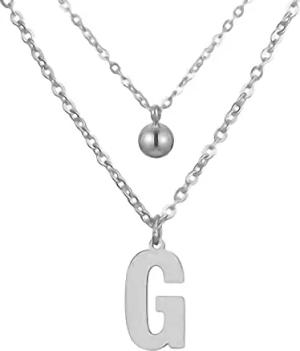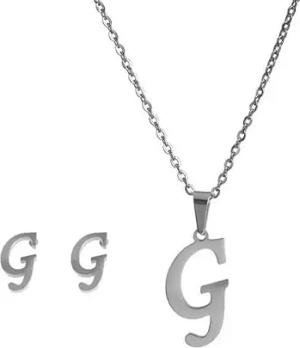 Silberfarbenes Schmuckset Letter aus Edelstahl für Damen - 1 Paar Ohrstecker & Kette mit Buchstabe nach Wahl (G)