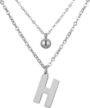 Damen Doppel-Kette BUCHSTABE und KUGEL Silber aus Edelstahl (Auswahl von A-Z) (H)