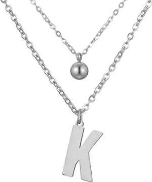 Damen Doppel-Kette BUCHSTABE und KUGEL Silber aus Edelstahl (Auswahl von A-Z) (K)