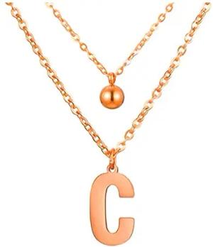 Doppel-Kette BUCHSTABE und KUGEL Roségold aus Edelstahl für Damen (Auswahl von A-Z) (C)