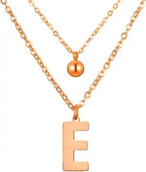 Doppel-Kette BUCHSTABE und KUGEL Roségold aus Edelstahl für Damen (Auswahl von A-Z) (E)