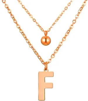 Doppel-Kette BUCHSTABE und KUGEL Roségold aus Edelstahl für Damen (Auswahl von A-Z) (F)