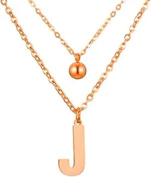Doppel-Kette BUCHSTABE und KUGEL Roségold aus Edelstahl für Damen (Auswahl von A-Z) (J)