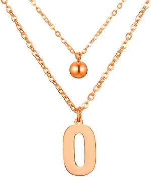 Doppel-Kette BUCHSTABE und KUGEL Roségold aus Edelstahl für Damen (Auswahl von A-Z) (O)