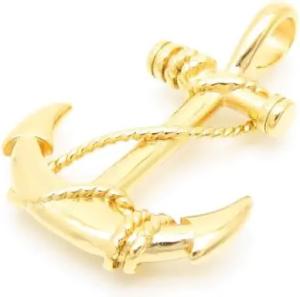 Edelstahl Anhänger Goldfarbener Anker mit Seil Anchor Kettenanhänger Damen und Herren