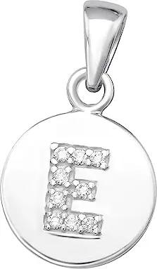 KETTEN-ANHÄNGER RUND mit Buchstaben und Kristallen aus .925 Sterling Silber - Buchstabe E