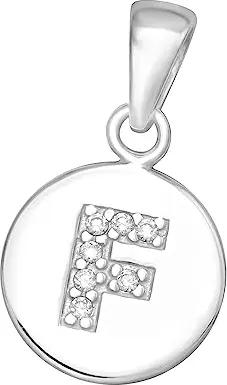 KETTEN-ANHÄNGER RUND mit Buchstaben und Kristallen aus .925 Sterling Silber - Buchstabe F