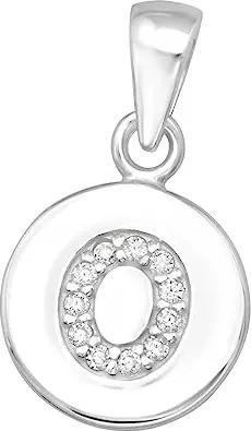 KETTEN-ANHÄNGER RUND mit Buchstaben und Kristallen aus .925 Sterling Silber - Buchstabe O
